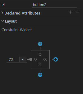 버튼 왼쪽 동그라미가 연결선으로 부모 레이아웃의 왼쪽 벽면과 연결이 되어 있습니다.